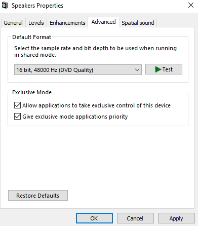 - Select 48,000Hz 16bits