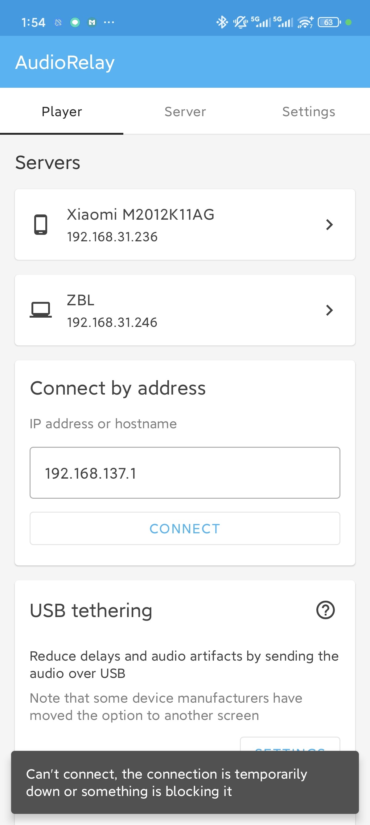 Can't connect, connection lost