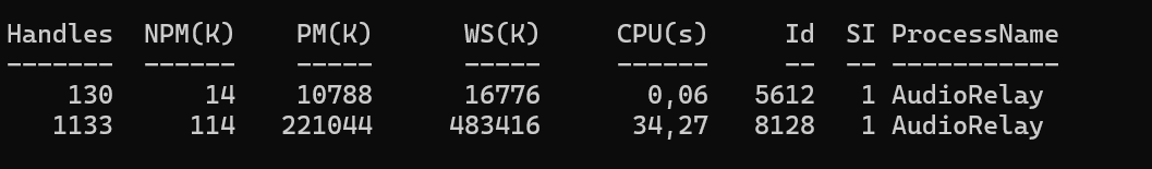 PS C:\\Program Files (x86)\\AudioRelay> Get-Process -Name AudioRelay